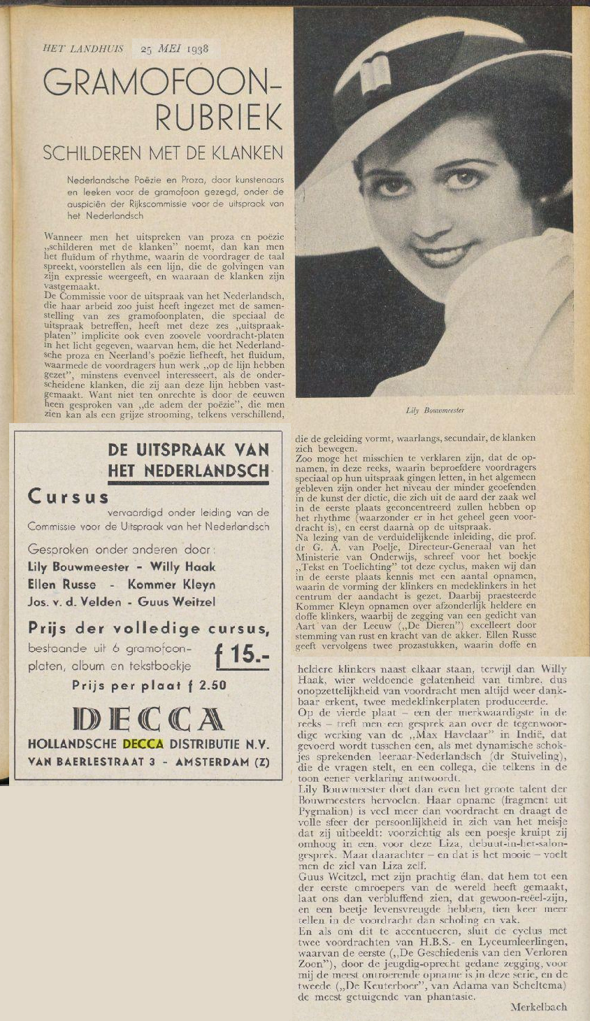 Aankondiging in Vrije Geluiden van 1 oktober 1938: